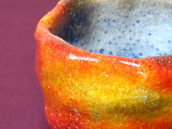 ひとつの釉薬で同時に七色の景色を器に表現しています。